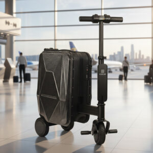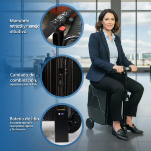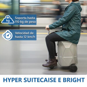 La Hyper-Suitcase-E es una innovadora maleta diseñada para transformar tus viajes. Es ideal para aeropuertos, terminales, exposiciones, turismo o traslados diarios. Su diseño combina movilidad, comodidad y diversión, convirtiéndola en un compañero versátil para cualquier destino.