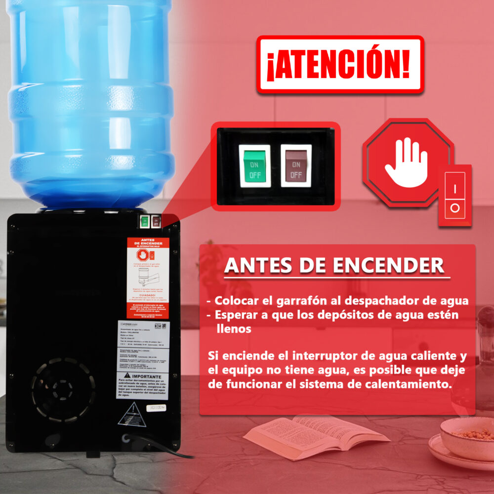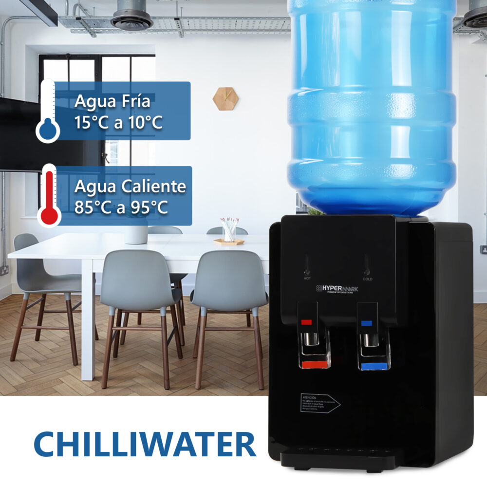 El dispensador de agua CHILLIWATER es una opción confiable y práctica para aquellos que buscan un suministro de agua embotellada, expende agua fría y caliente, de la forma más ágil y cómoda, justo en el momento que se desee. Su cuerpo plástico y soporte extraíble es de fácil limpieza y manejo.