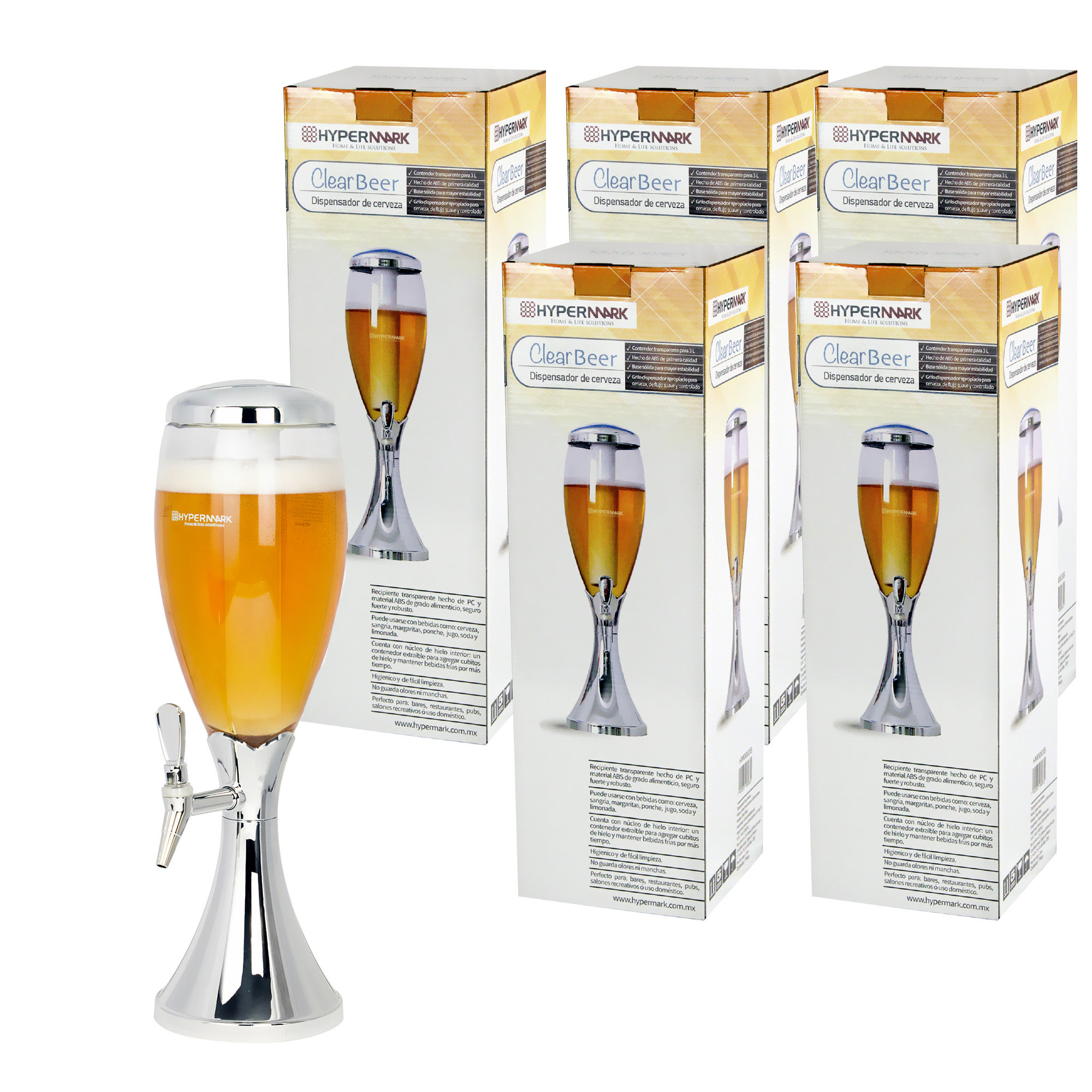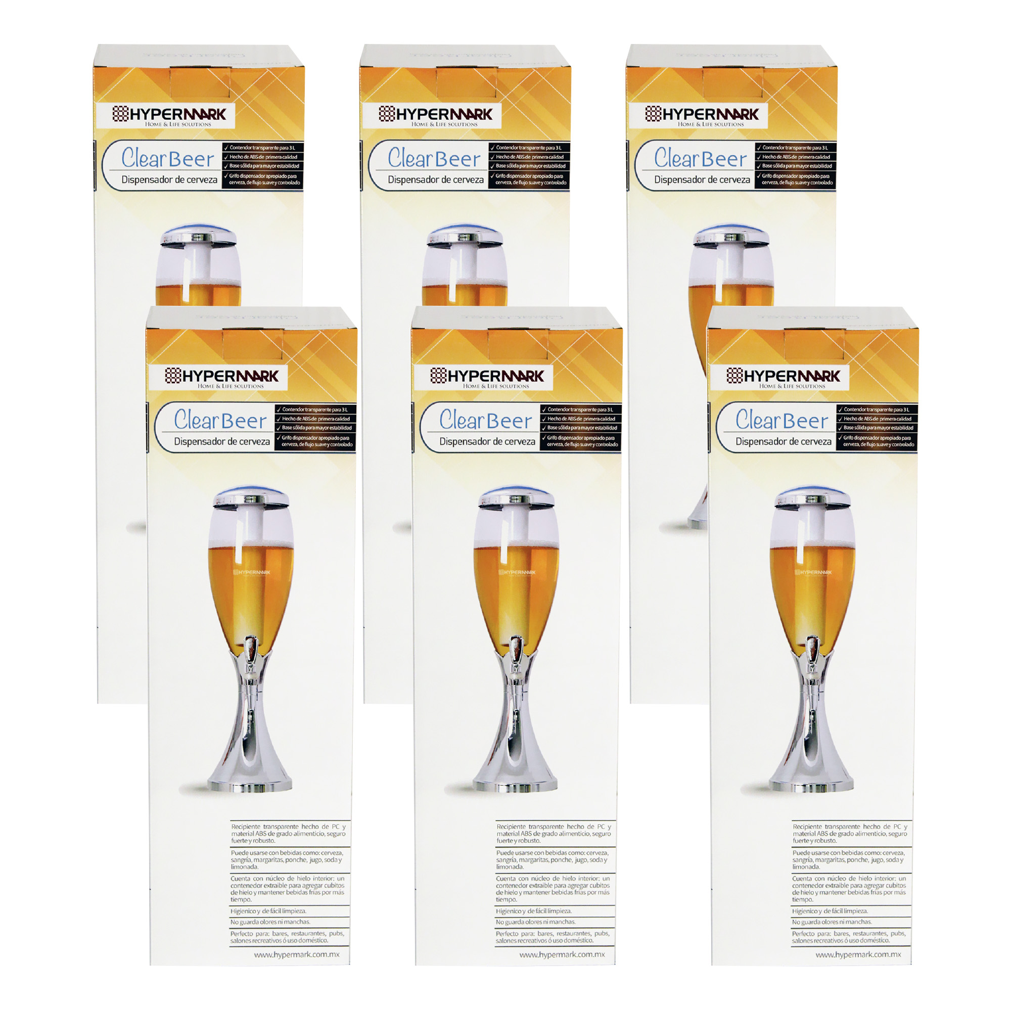 • 6 Dispensadores de cerveza y de bebidas frías con capacidad de 3 litros