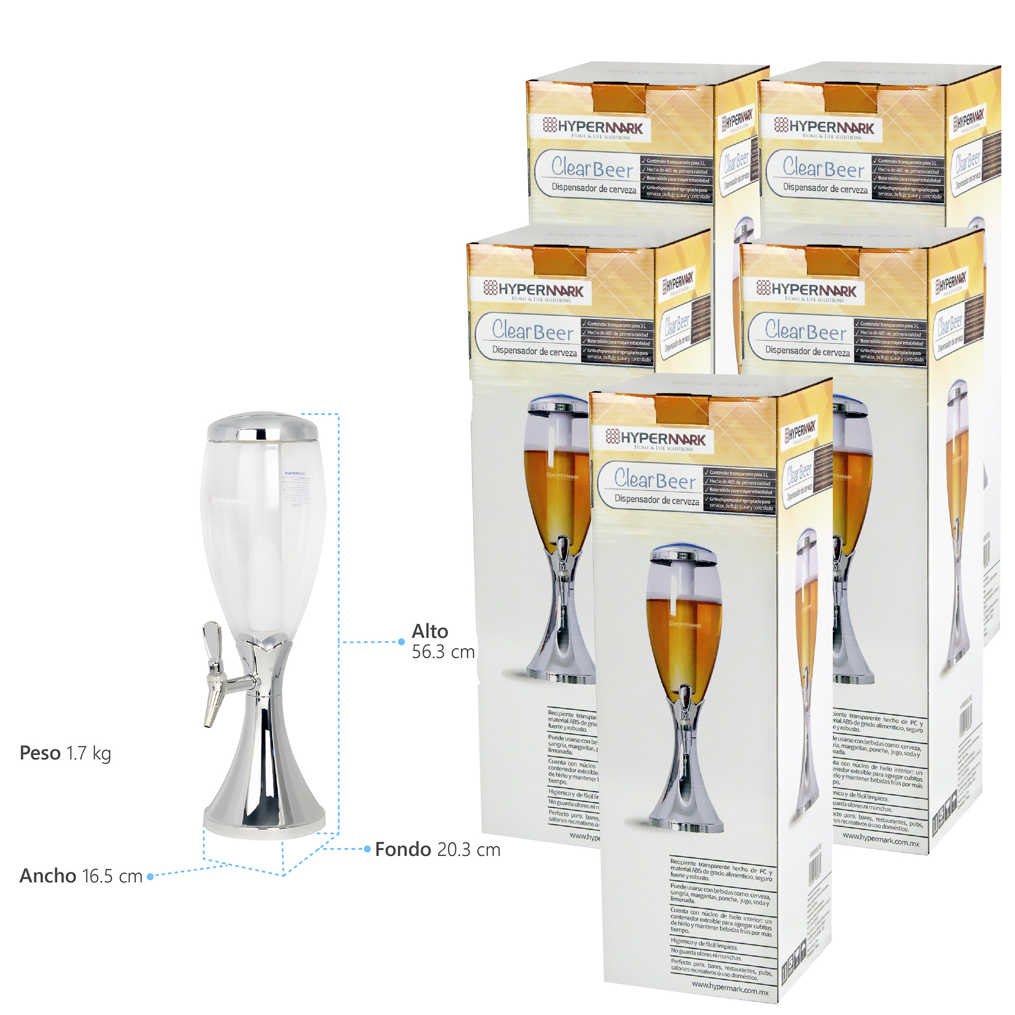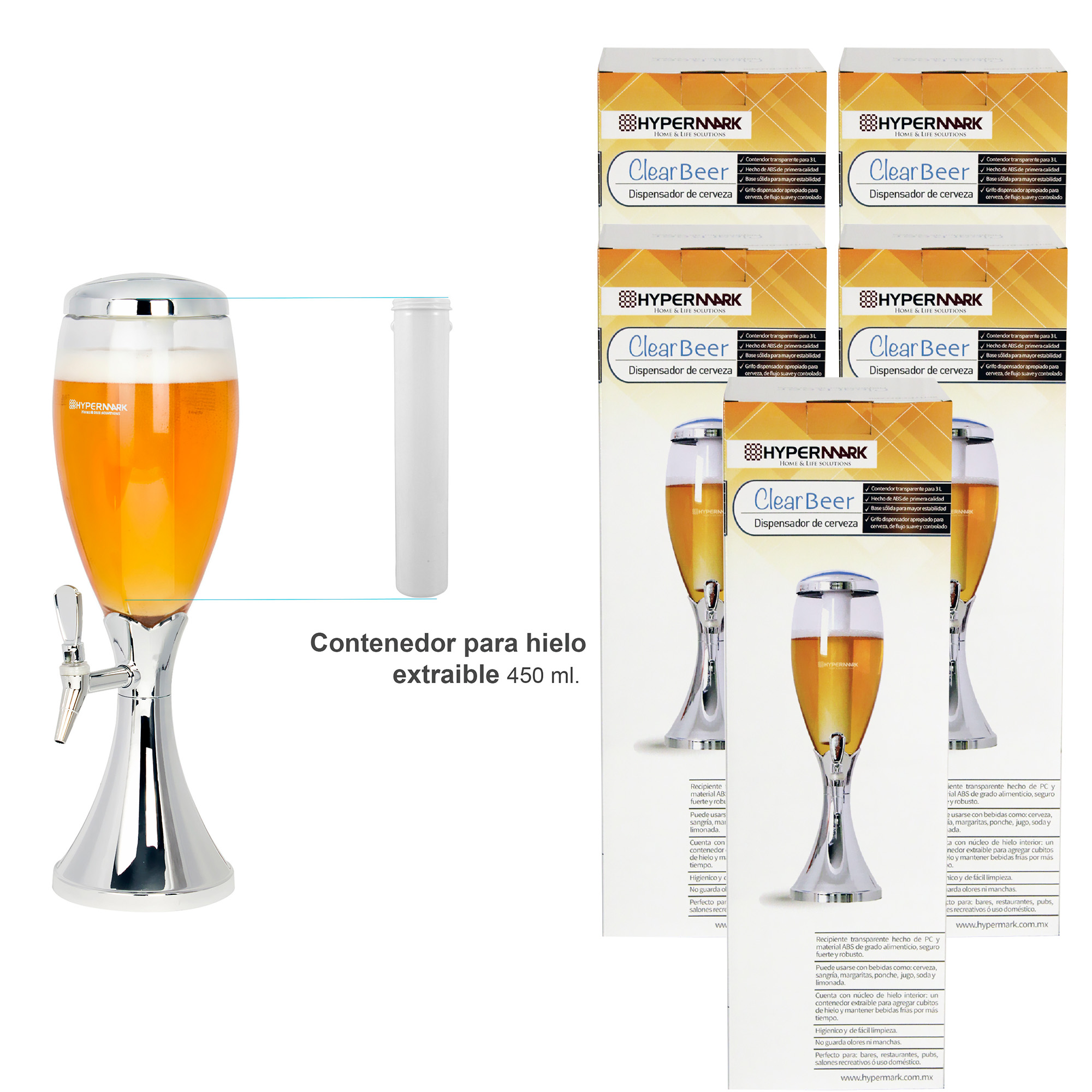 El juego de 6 dispensadores de torre para cerveza Hypermark ayuda a aumentar su eficacia para retener la temperatura de las bebidas frías ya que cuenta con un tubo de hielo extraíble el cual puede recargar con agua y colocarlo en el congelador antes de su uso, ayudando a mantener la cerveza fría o bien puede recargar el tubo con hielos de máquina. La base es pesada manteniendo la torre de cerveza estable incluso cuando está llena. El Clear Beer dispensador de cerveza con tubo de hielo es el complemento perfecto para la barra de un bar, restaurante, fiesta, pub, hogar, cafetería, evento o reunión al aire libre. Este dispensador de grifo de cerveza portátil puede utilizarse como decoración independiente o combinarse con otros utensilios de bar para crear un ambiente de bar único.