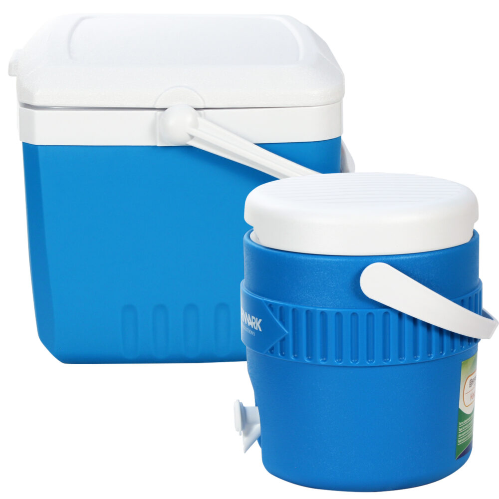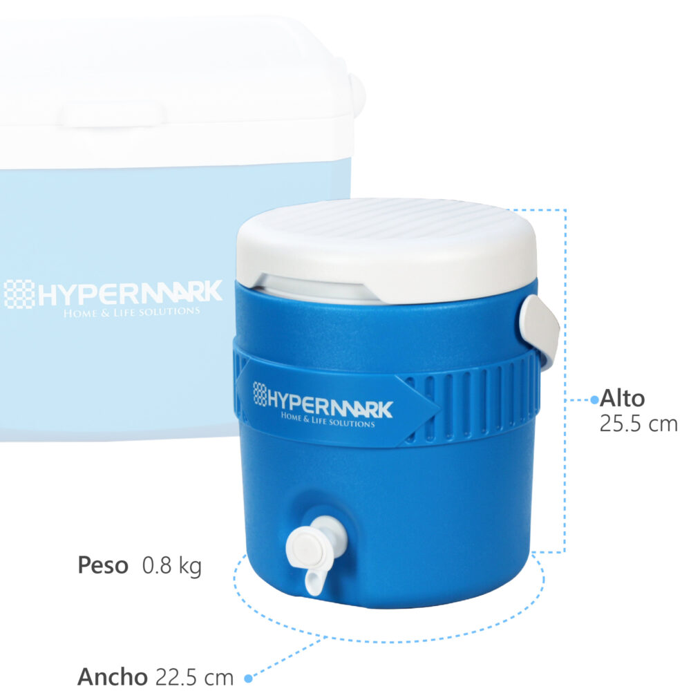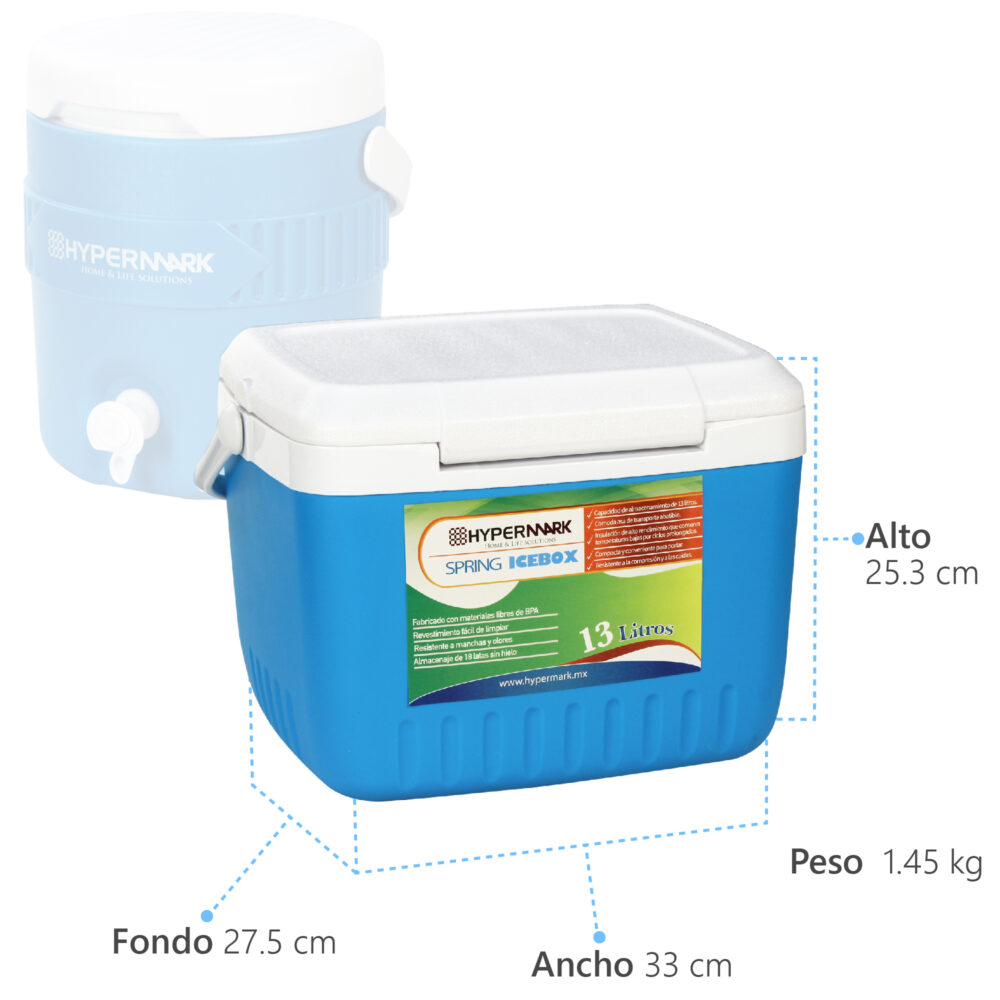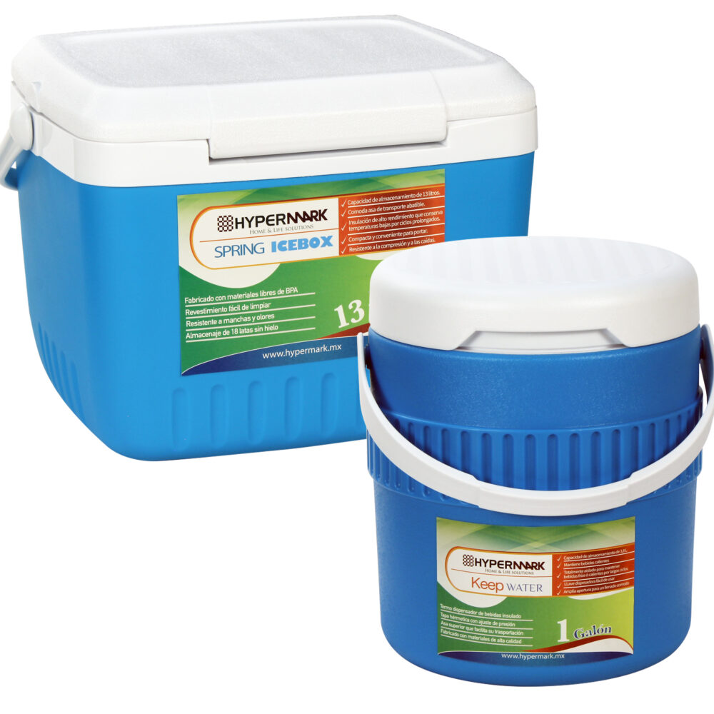 El juego de hielera de 13 litros y termo con capacidad de 3,8 litros de la marca Hypermark son ideales para llevar en viajes en carretera, fiestas, reuniones, salidas de pesca o excursiones a la montaña. Su diseño portátil facilita su transporte y se ajusta perfectamente en la cajuela de tu coche, te permite transportar de forma segura tus bebidas y alimentos ya que poseen asas reforzadas, puede almacenar hasta 18 latas la hielera, ambos modelos garantizan una temperatura constante y garantizan que tus bebidas se mantengan frías.
